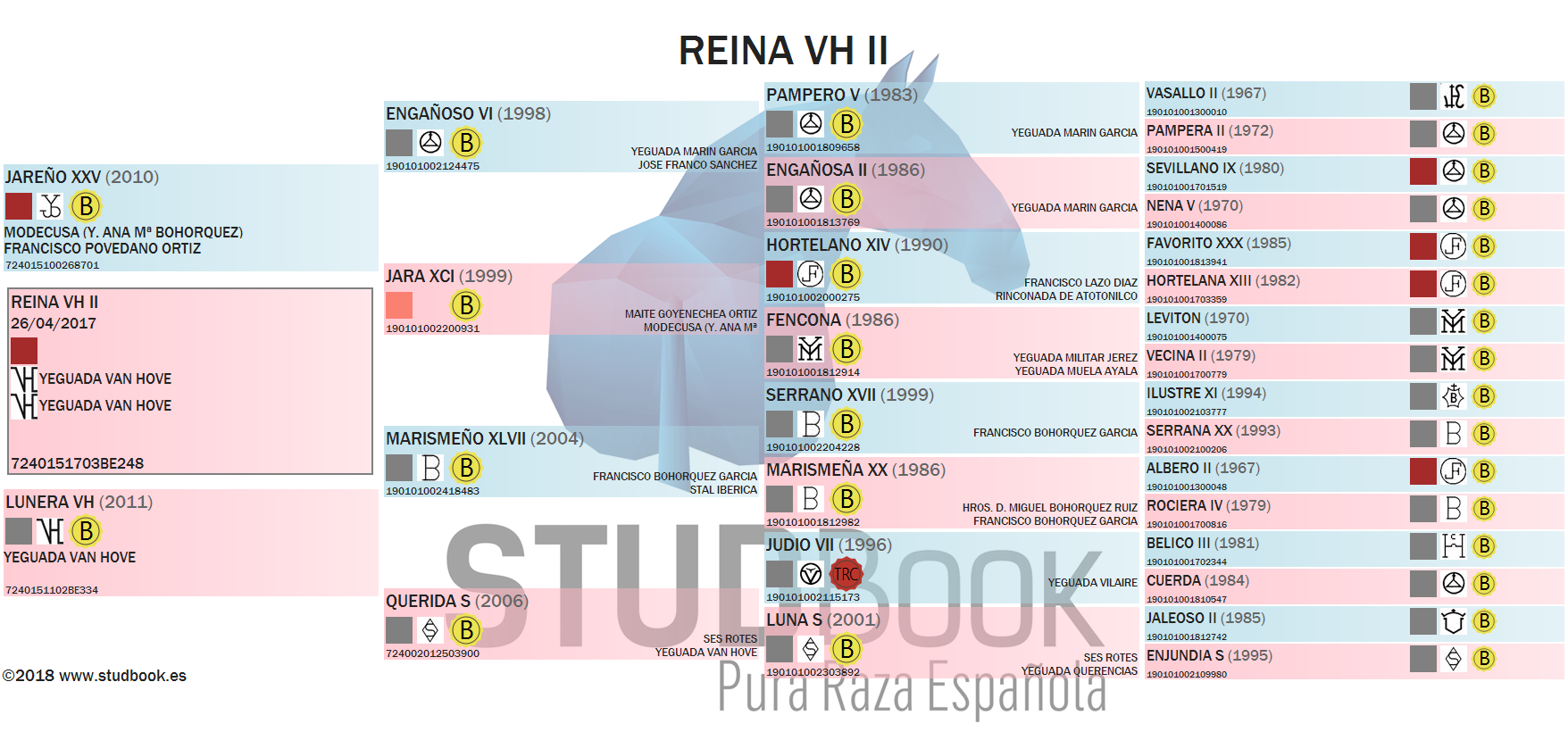 Dochter van 3 voudig sub-kampioen van Spanje. Meervoudig kampioene en sub-kampioene van het ras in Belgë en Nederland.